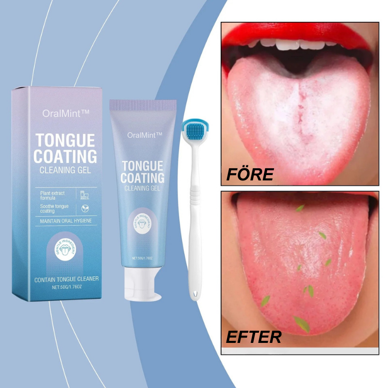 - Antibakteriell spearmintgel bryter ner den klibbiga beläggningen på tungan där luktframkallande bakterier gömmer sig.